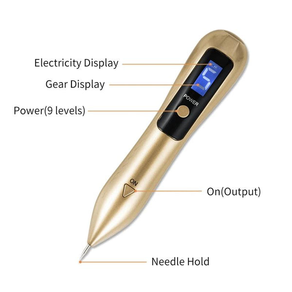 1. Spotting moles to remove spots beauty instrument, LCD display, can display the power and intensity level, safe to use, simple to operate, convenient and quick
