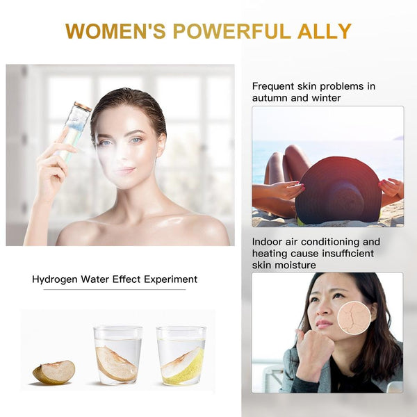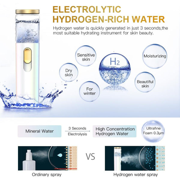 3. Hydrogen-rich water penetration: By adding hydrogen-rich water mist to the skin, the world's smallest molecule H2, the tiny molecules of hydrogen water can penetrate deep into the skin, leading to firm, transparent skin.