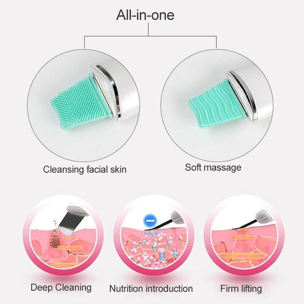 BLK-D016 Ultrasonic Beauty Shovel Skin Machine Vibration Household Facial Cleaning and Washing Massage Instrument Beauty Instrument(Black)