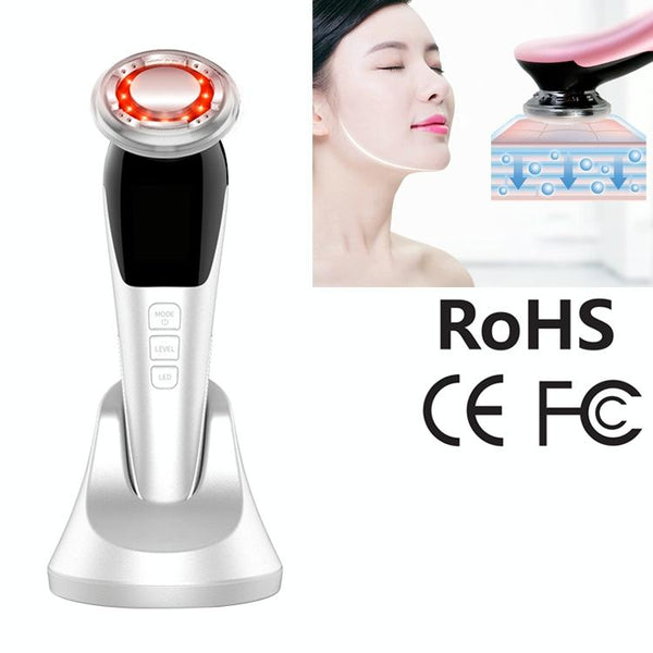 BLK-D818 Facial Beauty Instrument Hot and Cold Color Skin Rejuvenation Instrument EMS Micro Current Beauty Introduction Instrument (White)