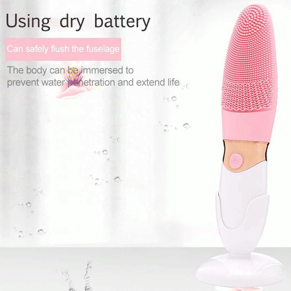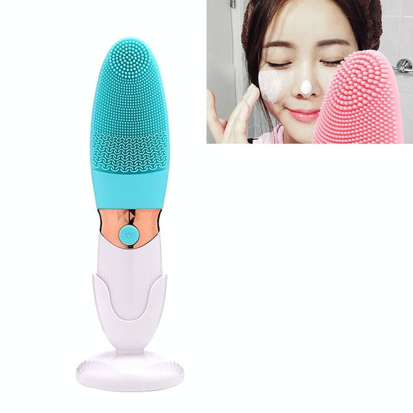 CNaier AE-618 Battery-powered Silicone Acoustic Wave Face Skin Care Electric Facial Cleanser (Blue)