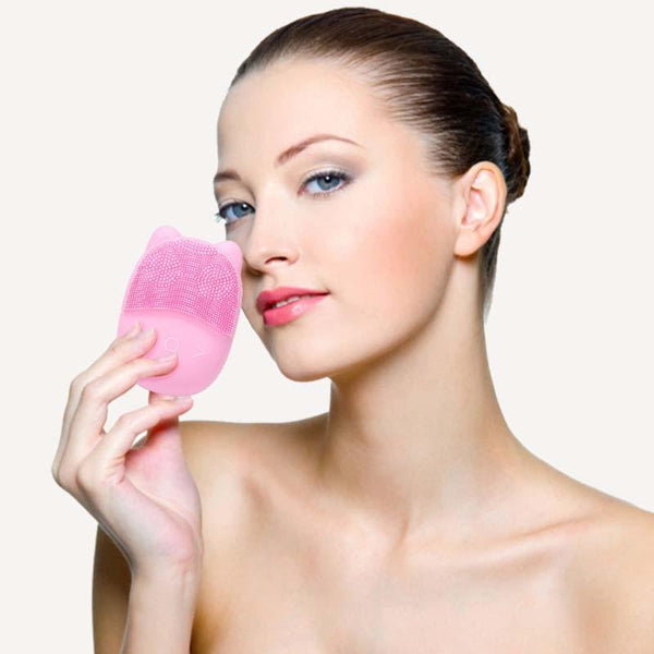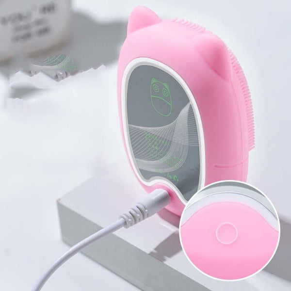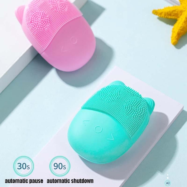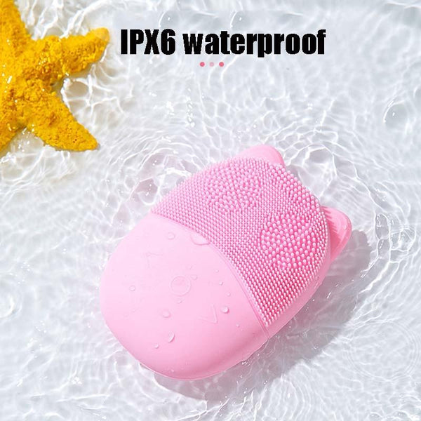 F35 Household Waterproof Electric Silicone Facial Cleanser Ultrasonic Massage Vibrating Facial Cleanser(Pink)