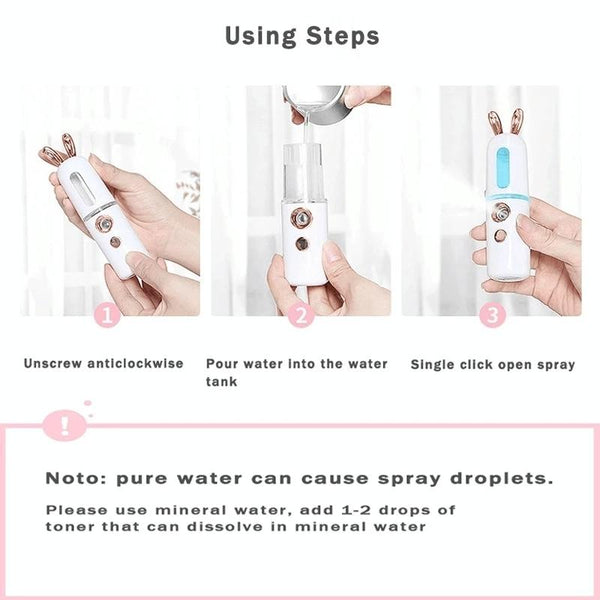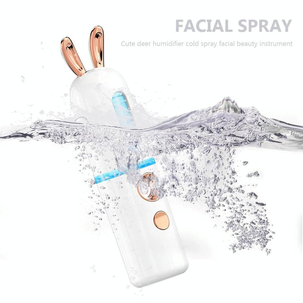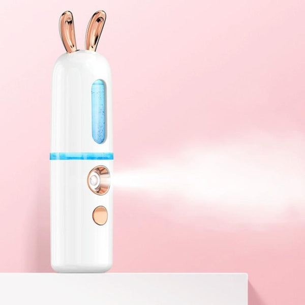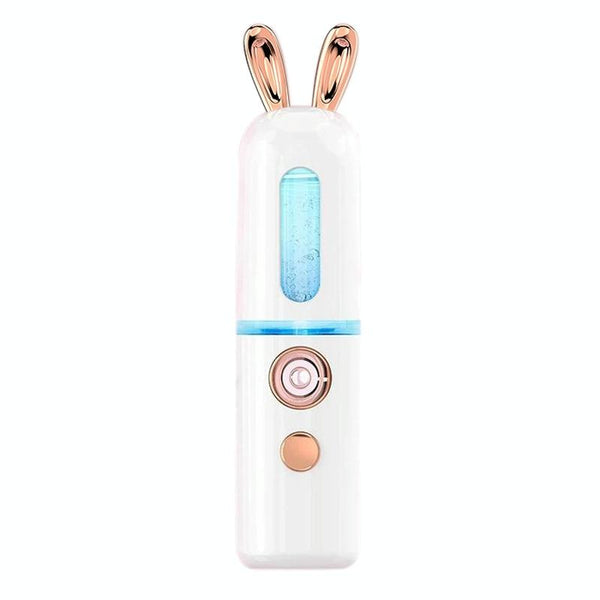 Facial Steamer Nano Spray Water Replenishing Instrument Portable Cold Spray Machine Charging Beauty Instrument Automatic Alcohol Sprayer, Style:Cute Rabbit(White)