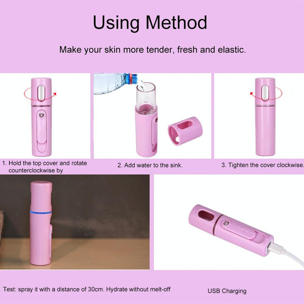 Facial Steamer Nano Steamer HandyFace Moisture Sprayer Rechargeable Mini USB Charging Automatic Alcohol Sprayer(Light blue)
