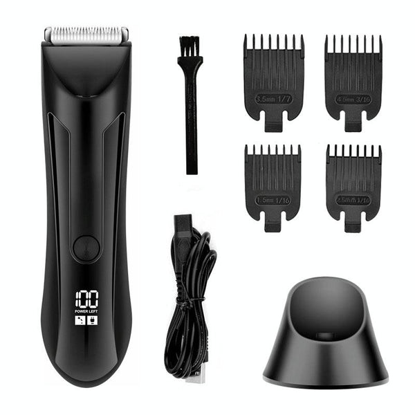 Mens Electrical Body Hair Trimmer LCD Digital Shaver(Black)