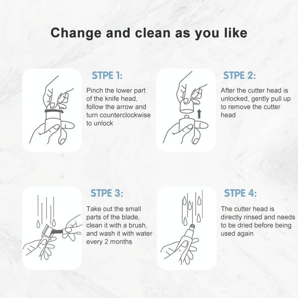 7. One-key rotation, the cutter head and body can be disassembled and cleaned, which is quick and worry-free. After trimming the nose hair, the cutter head is removed and rinsed to prevent the growth of bacteria, and the nasal cavity is sterile and healthier.
