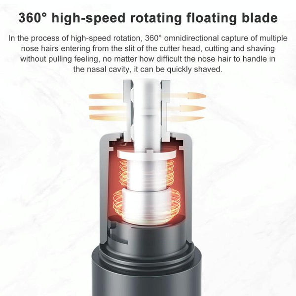 8. Built-in floating double-edged cutter head, during high-speed rotation, 360-degree omnidirectional capture of multiple nose hairs entering from the slit of the cutter head, cutting and shaving without pulling feeling, no matter how difficult the nose hair to handle in the nasal cavity, it can be quickly shaved.