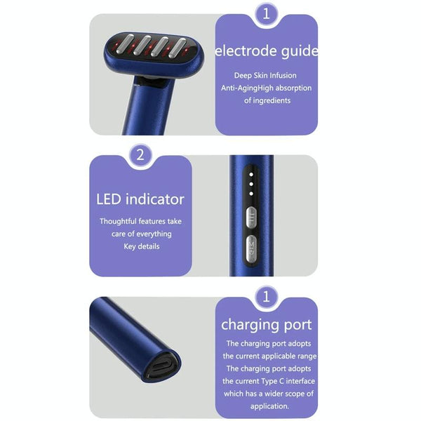 Red & Blue Light Therapy Facial Wand EMS Essence Introducing Device(Royal Blue)
