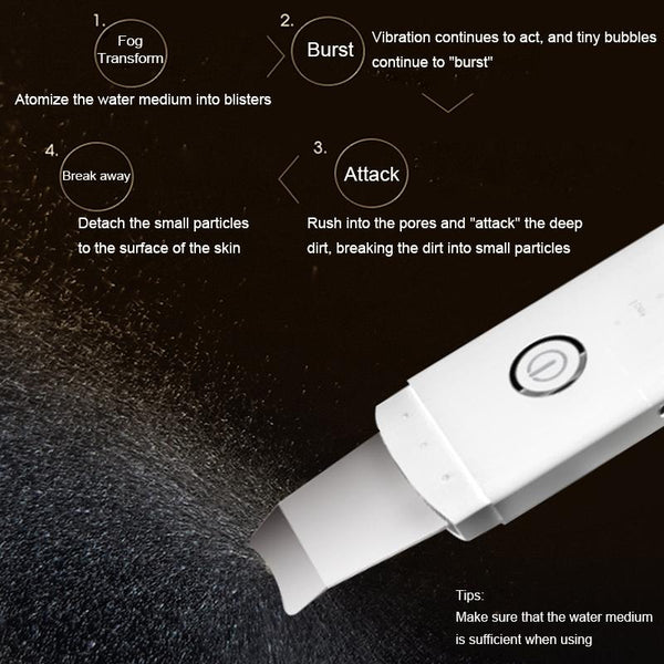 1. Ultrasonic high-frequency vibration meets water to form foam jets, using the power of foam jets to remove blackheads