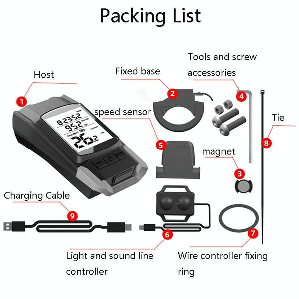 8. Features: Multifunctional three-in-one (code meter + front light + speaker)