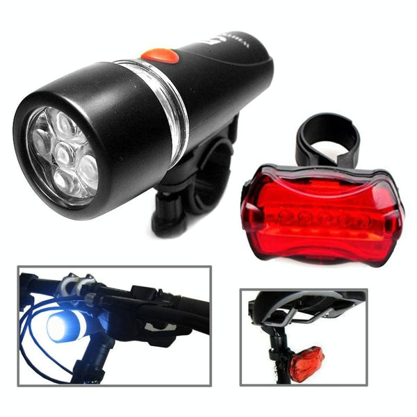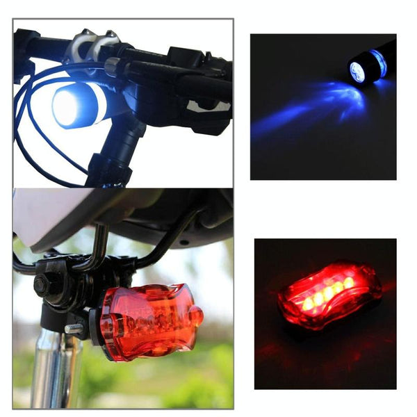 5 LED Water Resistant Bike Bicycle Head Light+ Rear Safety Flashlight