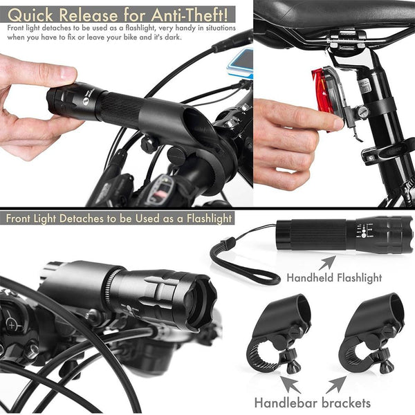 5W Mountain Bike Headlight Charging Zoom Glare Waterproof Flashlight Set Car Headlight x 2 + Taillight x 2 (Set Three)