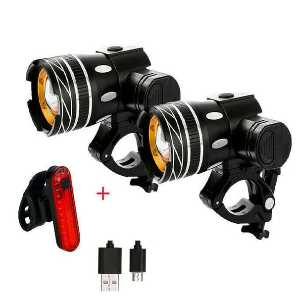 7602 LED USB Charging Telescopic Zoom Bicycle Front Light, Specification: 2 Headlight + 056 Taillight