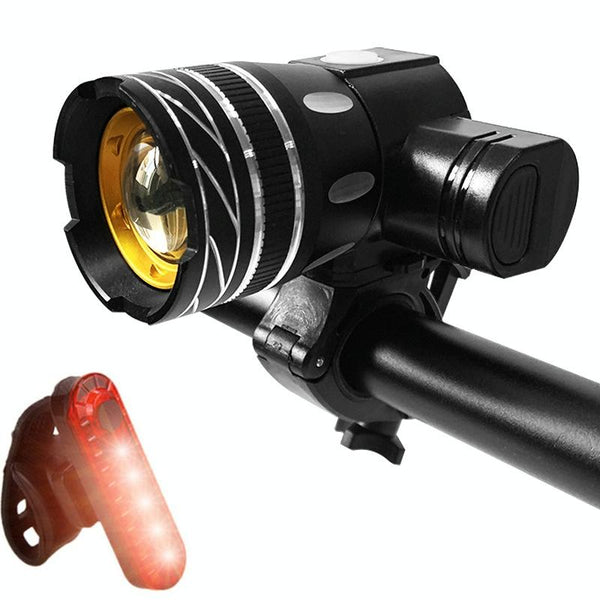 7602 LED USB Charging Telescopic Zoom Bicycle Front Light, Specification: Headlight + 056 Taillight