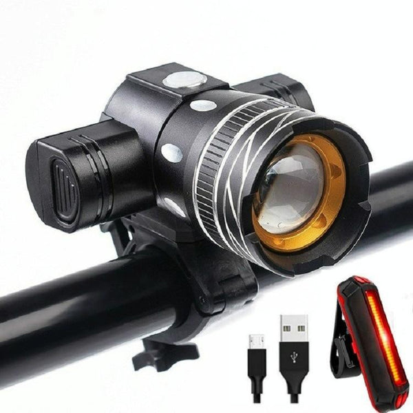 7602 LED USB Charging Telescopic Zoom Bicycle Front Light, Specification: Headlight +11034 Taillight
