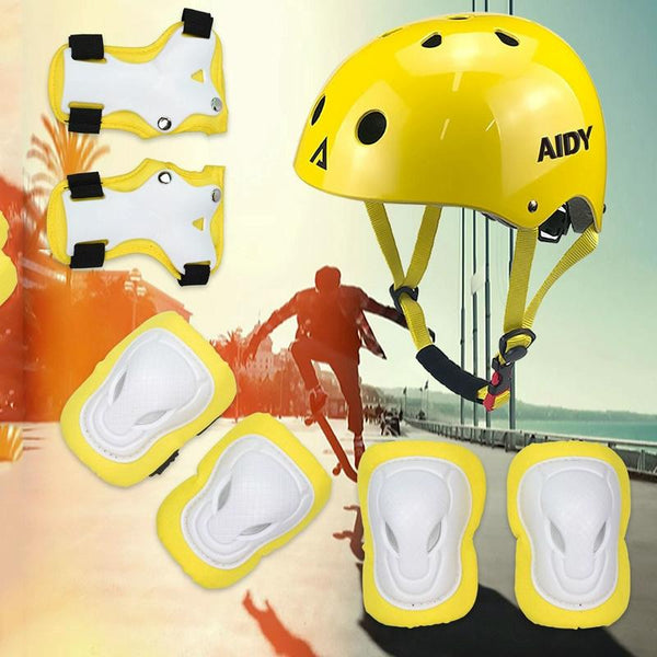 AIDY 7 In 1 Children Roller Skating Sports Protective Gear Set(Dumb Blue)