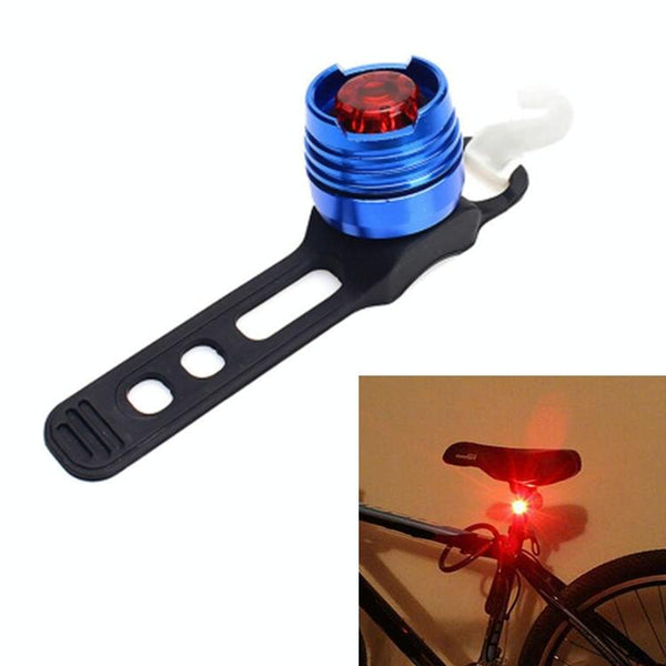 Aluminum Bicycle Cycling Front Rear Tail Helmet Red White LED Flash Lights Safety Warning Lamp Cycling Caution Light Waterproof(Red Light Blue Case)