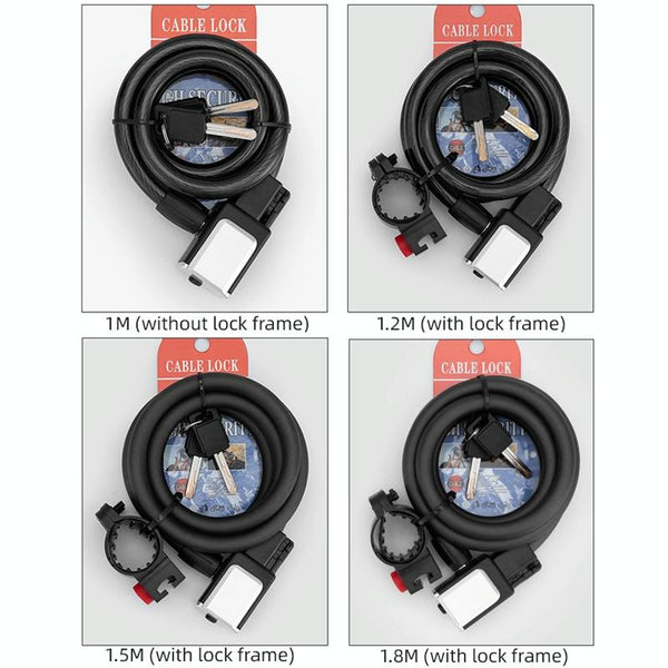 BG-0518 Mountain Bike Portable Anti-Theft Bold Cable Lock, Length: 1.8m With Lock Frame