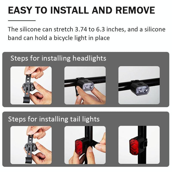 Bicycle Headlight Double T6 Lamp Beads + 16 LED Tail Light Set Rechargeable Helmet Warning Light