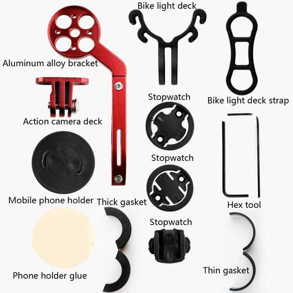 Bicycle Mountain Bike Aluminum Alloy Code Table Stand Universal Code Table Extension Flashlight Bracket(Red)
