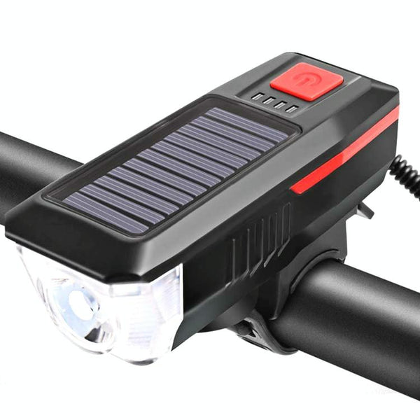 Bicycle Solar Headlight Horn Light Night Riding USB Charging Headlight Bicycle Glare Flashlight Equipment(Red)