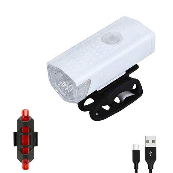 Bicycle USB Charging Headlight Lighting Cycling Equipment, Color:White 2255 Light+928 Red Taillight