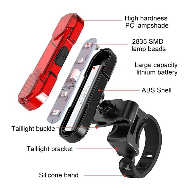 Bicycle USB Rechargeable Taillight LED Tail Lamp (Red Light)