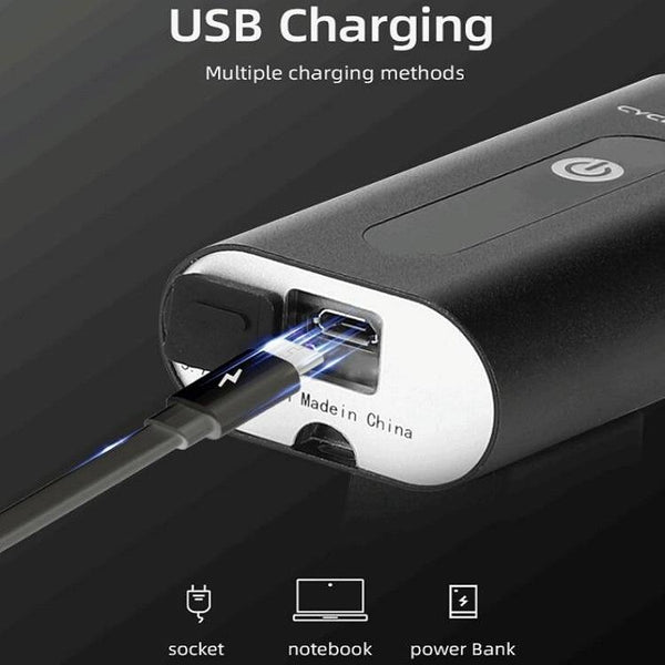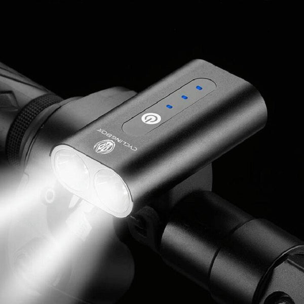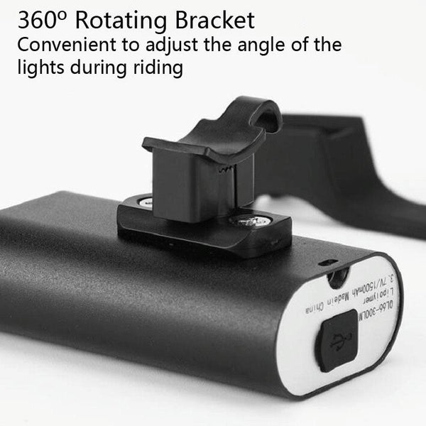 CYCLINGBOX Aluminum Alloy Double-Headed Bike Headlights Can Be Rotated 360 Degree Bracket USB Portable Charging Bike Lights Travel Equipment(Black)