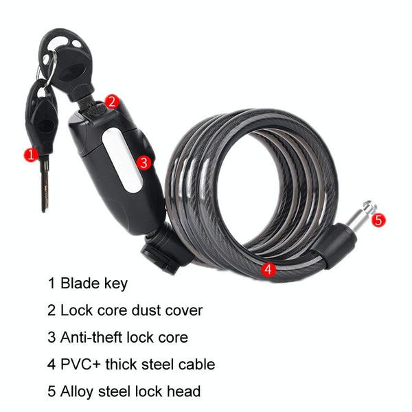 Fixed Portable Anti-theft Thickened Steel Wire Chain Bicycle Lock, Length: Matte Black 1.8m
