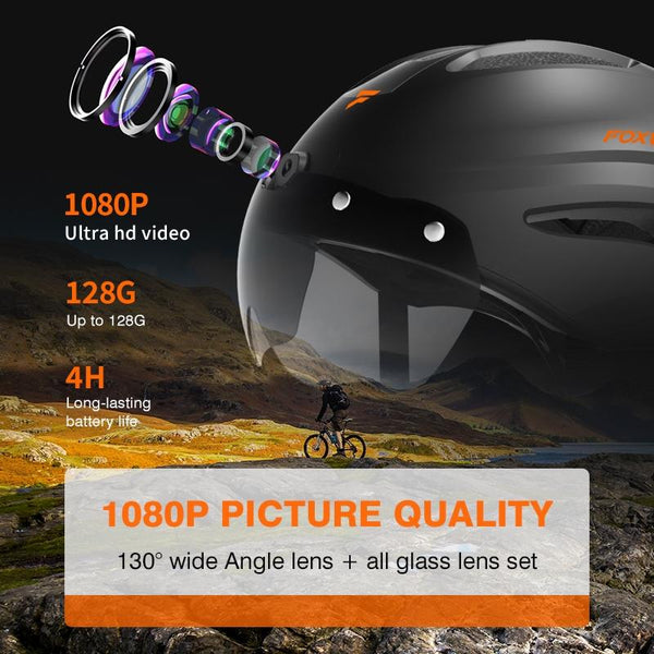Foxwear V8S 1080P HD Video Recorder Cycling Smart Helmet, Size: 54-58cm(White)