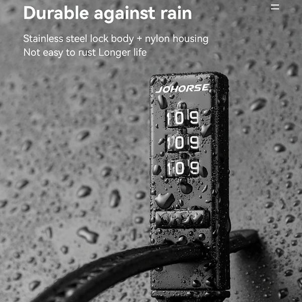 JOHORSE Bicycle Three-position Combination Lock Helmet Lock Stainless Steel Tie(Black)