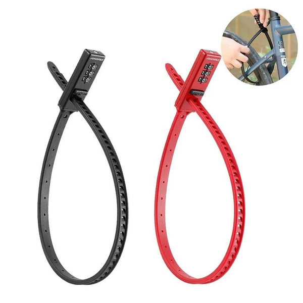 JOHORSE Bicycle Three-position Combination Lock Helmet Lock Stainless Steel Tie(Red)