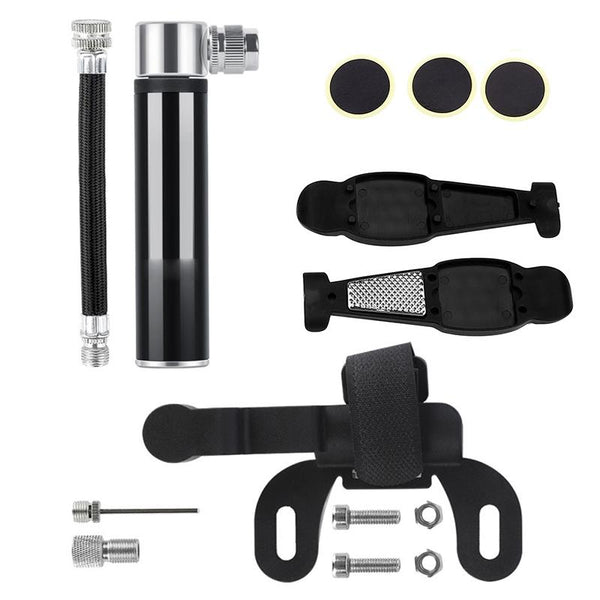 Manual Mini Portable Bicycle Aluminum Alloy Pump + Plastic glue-free tire patch + Tire lever (Black)