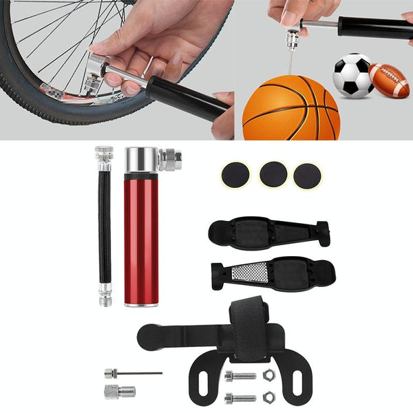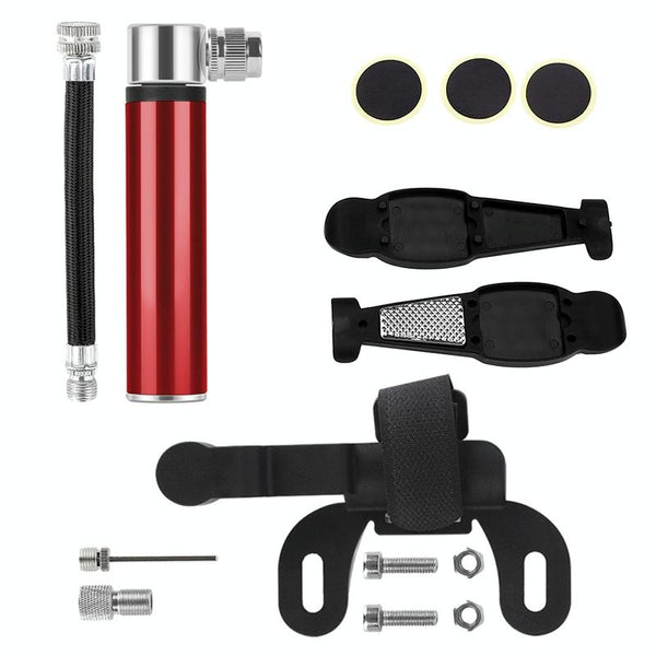 Manual Mini Portable Bicycle Aluminum Alloy Pump + Plastic glue-free tire patch + Tire lever (Red)