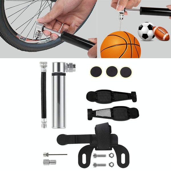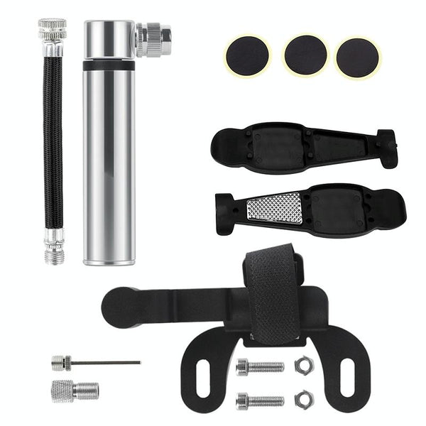 Manual Mini Portable Bicycle Aluminum Alloy Pump + Plastic glue-free tire patch + Tire lever (Silver)