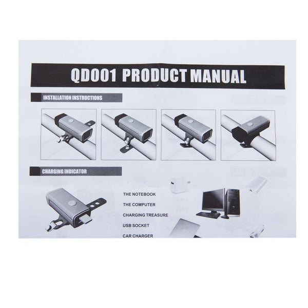 MC-QD001 180 Lumens USB Rechargeable LED Bright Aluminum Light with Handlebar Mount(Black)