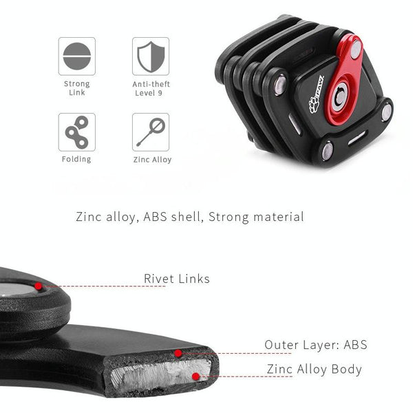 PAW Foldable Bike Lock Anti-theft Bicycle Lock Heavy Duty Chain Cable Padlock(Black)
