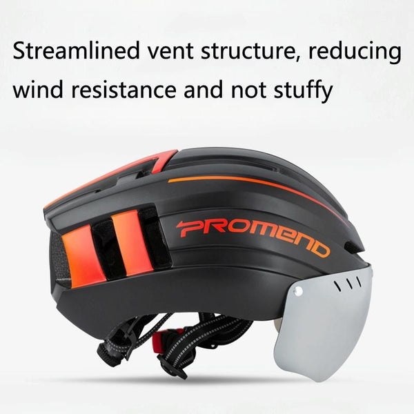PROMEND TK-12H15 Mountain Bike USB Magnetic Goggles Helmet With Warning Light, Size: L(Black Red)