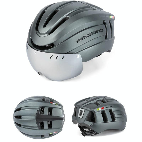 PROMEND TK-12H15 Mountain Bike USB Magnetic Goggles Helmet With Warning Light, Size: L(Titanium Gray)