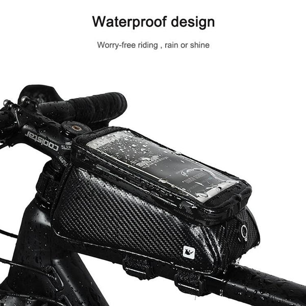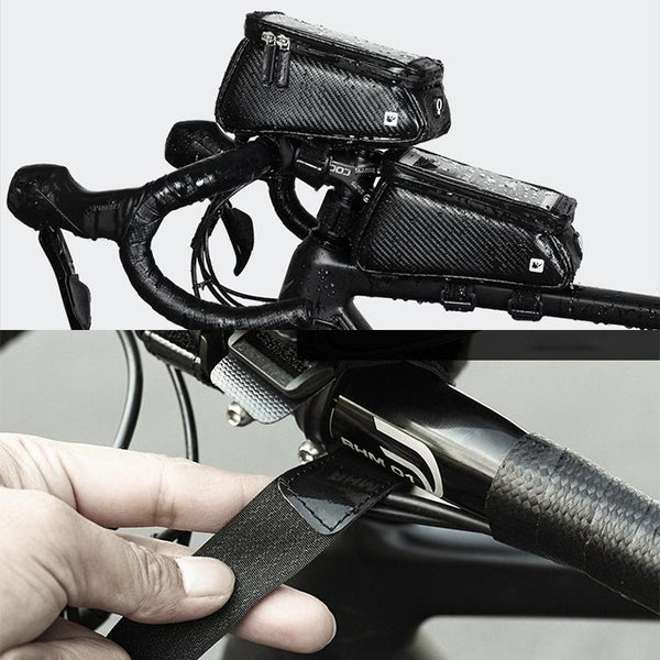 Rhinowalk Bicycle Front Tube Bag Waterproof Mobile Phone Touch Screen Multi-function Bicycle Handlebar Bag(Carbon Fiber Black)
