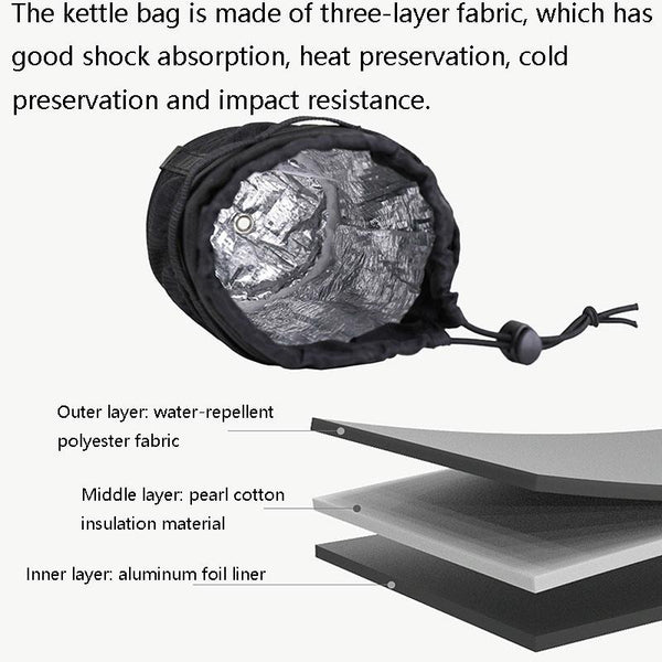 2. The water bottle bag is made of three-layer fabric of water-repellent polyester fabric, pearl cotton heat insulation material and aluminum foil liner, which has good shock absorption, heat preservation, cold preservation and impact resistance.