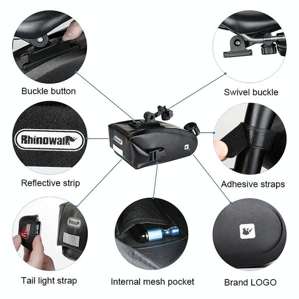 Rhinowalk X20516 1.2L Three-dimensional Tool-free Installation Waterproof Bicycle Tail Bag(Black)