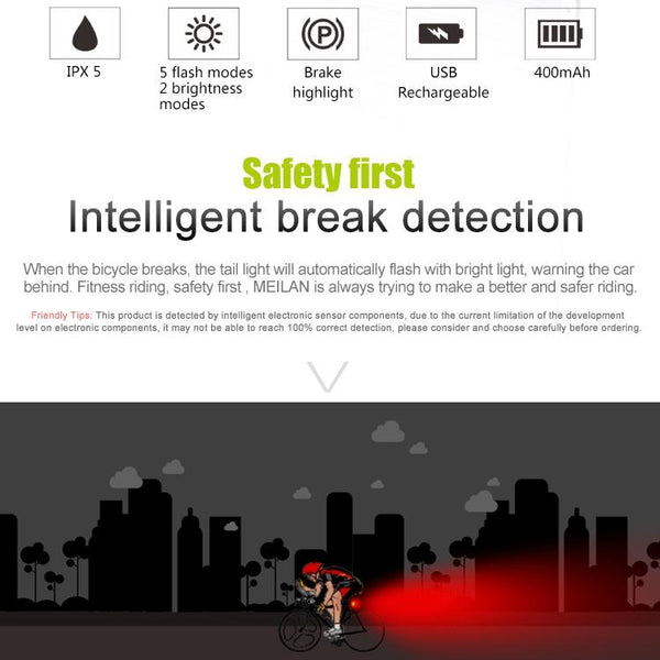 2. Auto detect bike braking, LED flashing warn the car behind assure the safety of your riding