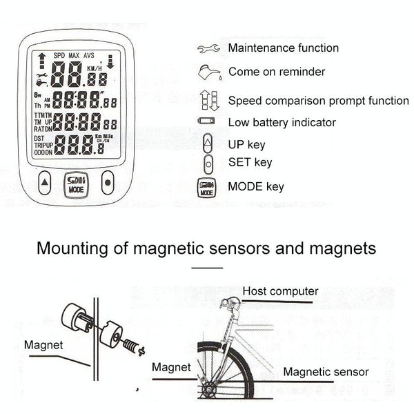 7. Configuration: meter head * 1, base induction wire * 1, magnet * 1, cable tie * 6, Chinese / English manual * 1