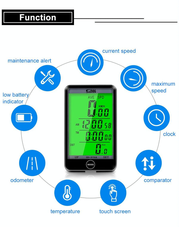 SUNDING SD-576A Waterproof Bike Cycling Odometer Stopwatch LED Digital Rate Speedometer Watch