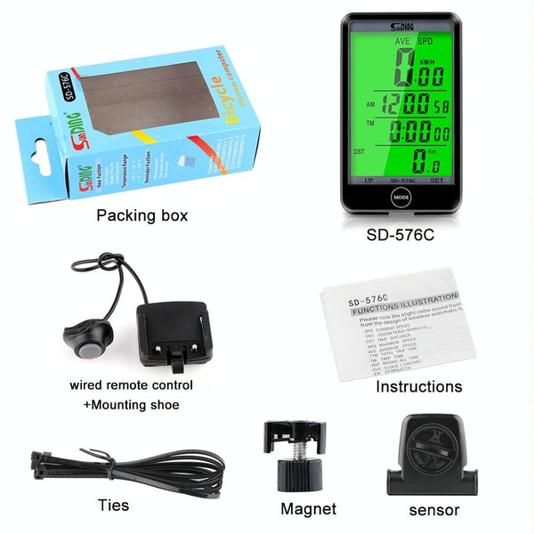 SUNDING SD-576C Bicycle LCD Backlight Stopwatch Bike Speedometer Cycling Odometer Stopwatch(Black)