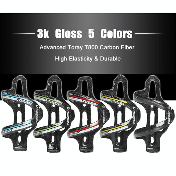 TOSEEK GlossFull Carbon Fiber Road Bicycle Water Bottle Holder(Red)