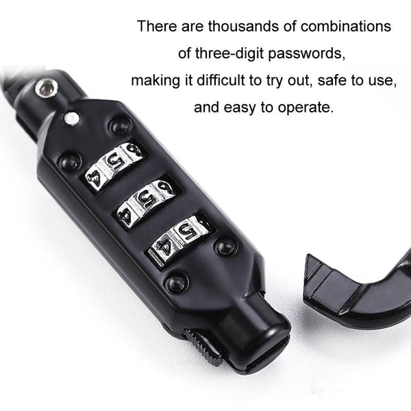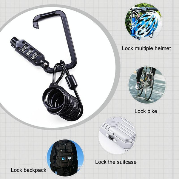 Universal Safety Code Wire Rope Helmet Lock for Motorcycles Bicycles, Black+Storage Bag