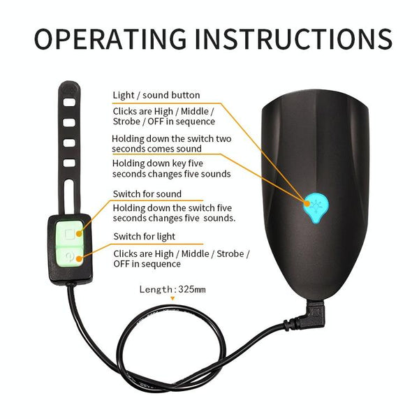 USB Charging Bike LED Riding Light, Charging 3 Hours with Horn(Blue)