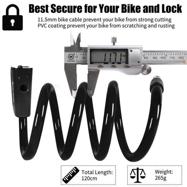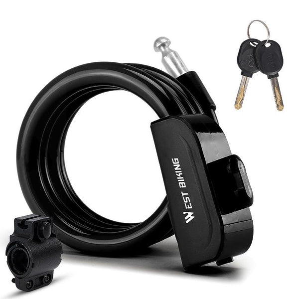 WEST BIKING 1.2m Bicycle Lock PVC Steel Cable Anti-theft Waterproof Cycling Lock(Black)